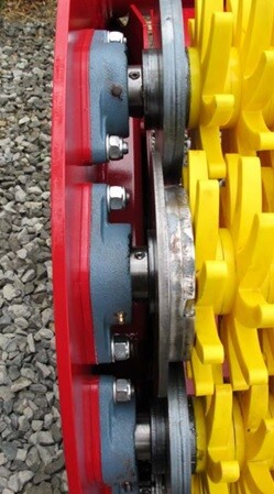 - oblast, kde se rotující hvězda setkává s pevným bočním panelem, má jedinečný design, do kterého zapadají ocelové koncové disky. To zajišťuje rovnoměrné opotřebení hvězdy po celé délce hřídele a uzavírá mezeru mezi hvězdou a bočním panelem, takže lze zachovat skutečnou velikost frakce.